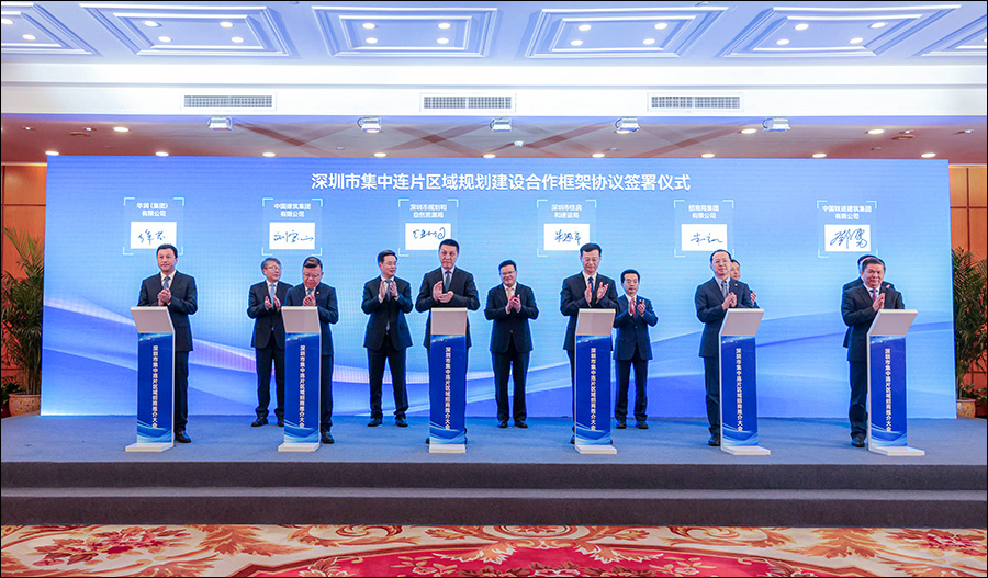 在孟凡利、缪建民、覃伟中等见证下,深圳市规划和自然资源局、深圳市住房建设局与招商蛇口等10家单位签署合作框架协议。