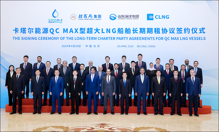 招商局旗下合资公司中国液化天然气(控股)有限公司在本次仪式中,也与卡塔尔能源签署2艘QC Max型超大LNG运输船长期期租协议。