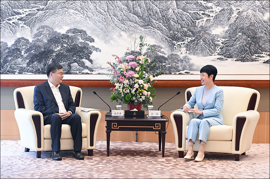 石岱欢迎赵忠秀一行到访招商局,并介绍了招商局的基本情况。她表示,招商局创立于1872年,是百年央企、综合央企、驻港央企。招商局1978年就投身改革开放,建立了中国第一个对外开放的工业园区蛇口工业区,为中国改革开放事业探索提供了有益经验。招商局业务包括交通物流、综合金融、城市与园区综合开发等核心产业,当前正聚焦数智科技、生命科技、绿色科技培育战略性新兴产业,全面加速推进“第三次创业”。对外经济贸易大学是新中国第一所培养对外贸易专门人才的高等学府,为国家经贸事业发展输送了许多优秀人才。希望双方在人才培养、科技研发等领域进一步加强合作,携手推动高质量发展。