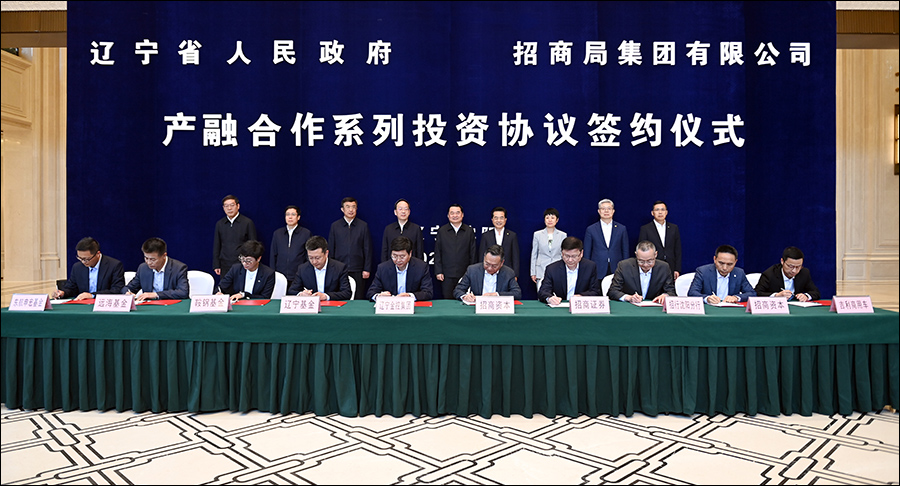 5月12日,招商局集团与辽宁省人民政府在辽宁沈阳签署产融合作系列投资协议,进一步深化双方务实合作。辽宁省委书记、省人大常委会主任郝鹏,省委副书记、省长李乐成,招商局集团董事长缪建民、总经理石岱出席并见证签约。辽宁省委常委、常务副省长王健,省委常委、秘书长姜有为,副省长王利波,招商局集团总经理助理、董事会秘书,集团办公室主任张军立出席签约仪式。辽宁省政府秘书长、办公厅主任冯守权主持签约仪式。