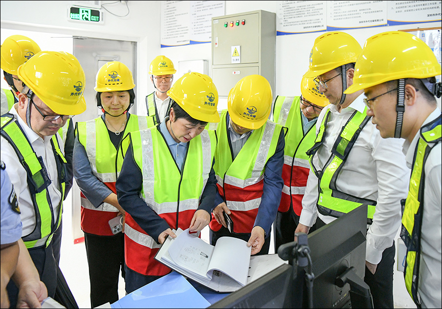石岱在前海综合保税区深圳外代前海仓库进行了实地检查,重点检查了消防控制室、水泵房、发电机房等设施设备运转情况和防汛物资准备情况,以及地下室等地势较低处的防汛举措及排水设备运行状态,查阅了值班、交接班、训练记录,现场询问了值班人员工作职责和应急处置流程等安全工作要点。她对外运物流防汛防台以及整体安全工作予以肯定,指出外运物流聚焦企业经营生产本质安全,强化安全体系建设、打造安全文化,以高度的责任心和专业素养,时刻保持奋斗状态,安全队伍整体训练有素,努力做到懂安全、会安全,以高水平安全保障企业的高质量发展。