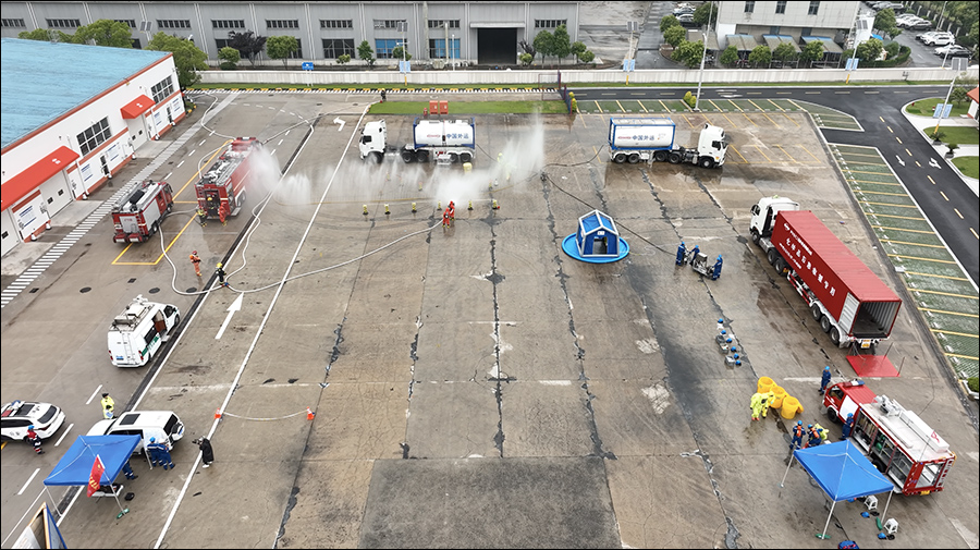 仪式结束后,集团在中外运化工国际物流有限公司上海分公司举行危险货物道路运输事故应急救援演练。