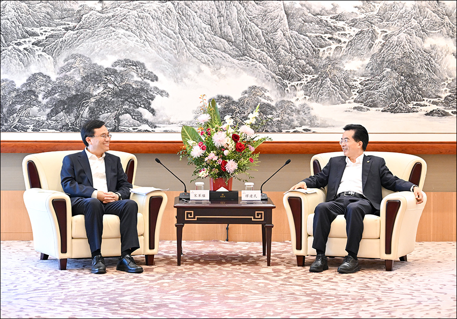 10月18日,集团董事长缪建民在香港招商局大厦会见山东省副省长宋军继,双方就进一步深化合作进行交流。集团副总经理邓仁杰,集团总经理助理、董事会秘书,集团办公室主任张军立参加会见。