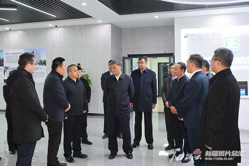 11月22日,自治区党委书记马兴瑞,自治区党委副书记、自治区主席艾尔肯·吐尼亚孜来到新疆标检产品检测认证有限公司,了解企业发展管理成效。石榴云/新疆日报记者 崔志坚摄