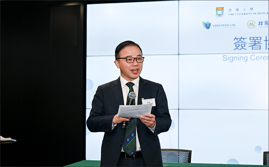 缪建民在致辞中指出,香港大学是全球最知名的高等学府之一,是香港的靓丽名片,与招商局同属“百年老店”。当前,招商局集团正全面加速推进“第三次创业”,通过组建招商创科,在香港设立先进技术研究院、狮子山人工智能实验室等,积极布局数智科技、生命科技、绿色科技等关键领域,以科技创新引领产业创新,大力发展新质生产力。希望双方以此次签约为契机,全面深化科技创新合作,充分发挥各自在科学研究、产业应用两方面的优势,围绕关键底层技术开展科研攻关,加快掌握制胜未来的“关键一招”,广泛汇聚国内外顶尖人才和知名科研伙伴,通过市场需求牵引科技创新,共同打造粤港澳大湾区新一代药物研发的原创技术策源地,助力香港国际创科中心建设。