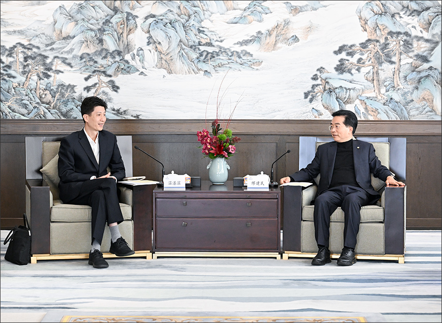 缪建民欢迎温湛滨、陈涛一行来访,向汕头市委、市政府长期以来的支持表示感谢,并简要介绍了招商局的发展历程和基本情况。他表示,招商局与汕头市有着深厚的合作渊源,在交通物流、地产园区、科创产业等领域开展了高效务实的合作。当前,招商局正加快推进传统产业转型升级,聚焦数智科技、生命科技、绿色科技三大领域培育新兴产业,取得积极成效。双方在今天这个辞旧迎新的特殊时刻开展友好交流,预示着合作即将开启新的篇章。希望在新的一年,双方不断深化合作、协同发展,招商局将努力为汕头经济社会高质量发展作出更大贡献。
