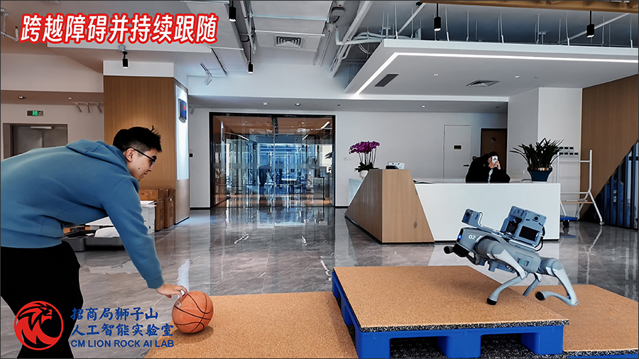 对搭载狮子山人工智能实验室研发的基于云端具身AI模型的智能跟随狗进行测试