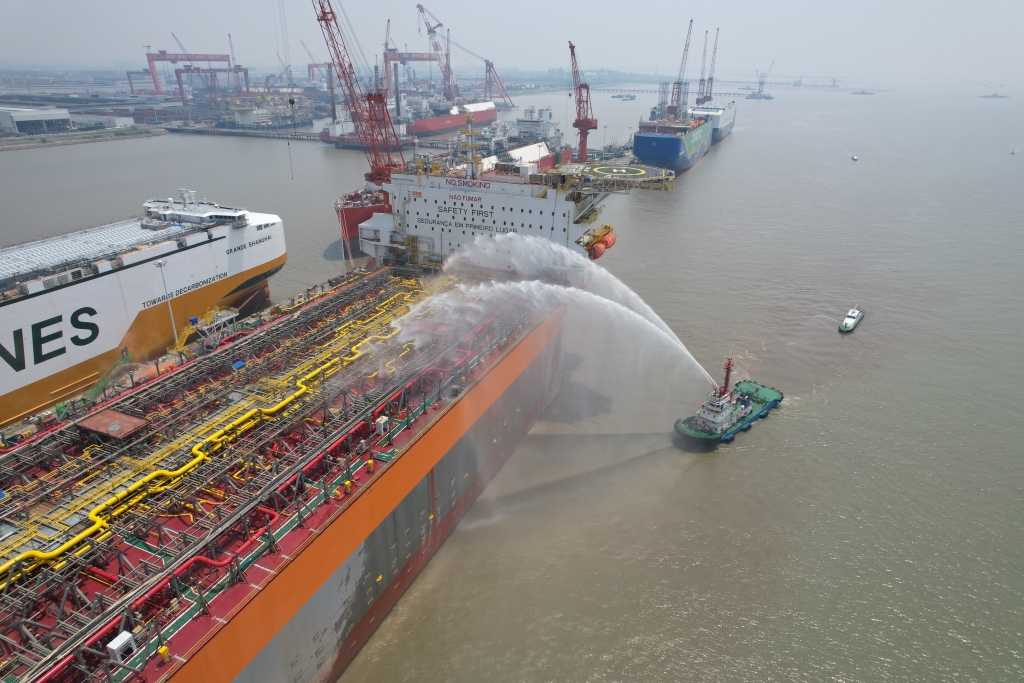 仪式结束后,集团在招商工业海门基地举行“FPSO造船项目火灾突发事件”应急演练。