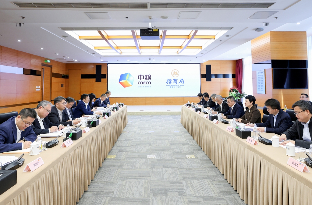 白勇欢迎石岱一行到访中粮集团,感谢招商局集团长期以来对中粮集团改革发展的大力支持。他表示,中粮集团与招商局集团产业链布局高度契合,合作历史长久。今年6月签署战略合作框架协议以来,双方加快推进各领域业务合作,进一步实现资源共享、优势互补。希望与招商局集团携手聚焦“十五五”战略任务,依托常态化沟通和“总对总”工作机制,持续深化航运物流、综合金融、品牌渠道等全链条、全方位战略合作,并在战新产业、国际合作等领域积极探索新的合作方式、拓展新的合作空间,共同服务粮食产业链供应链稳定畅通、促进中国农粮食品产业数智化转型。