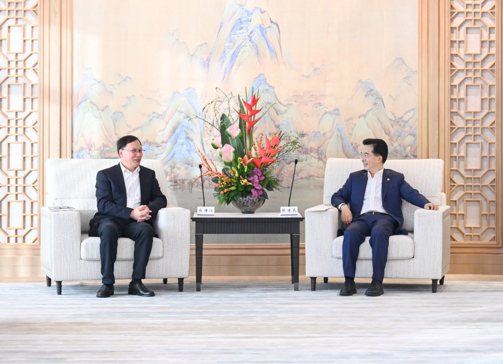 12月15日,招商局集团董事长缪建民在香港会见中国海油董事长张传江一行,双方就进一步深化合作进行交流。中国海油总会计师穆秀平,总经理助理、董事会秘书,集团办公室主任田文学;招商局集团副总经理冯波鸣,集团总经理助理、董事会秘书,集团办公室主任张军立参加会见。