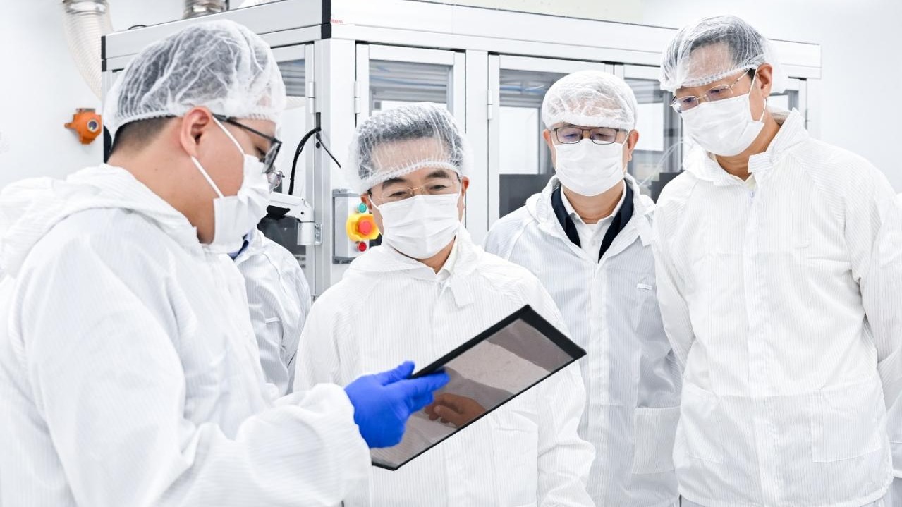 8月29日,集团董事长缪建民带队调研集团与香港科技大学联合建设的钙钛矿新型半导体实验室,并听取了技术研发攻关情况的汇报。香港科技大学首席副校长郭毅可,集团副总经理邓仁杰,集团总经理助理、董事会秘书,集团办公室主任张军立等参加调研。