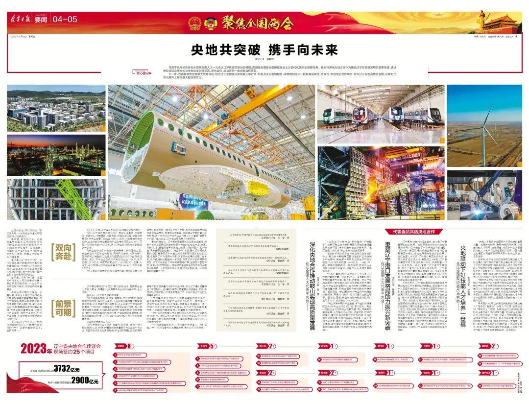 近日,北京,辽宁省与央企深化合作座谈会成功举行。3月9日,《辽宁日报》以两个整版篇幅推出《共谋振兴新突破 央地携手向未来》专题报道,邀请全国人大代表、全国政协委员畅谈深化央地合作助力实现辽宁全面振兴新突破的新举措、新作为。