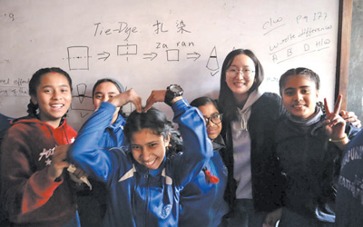 在尼泊尔,来自中国的志愿教师王吉丹丹制作了元素丰富的视频,为当地孩子介绍北京的城市文化,让他们感受中国民众的生活方式、生活态度和文化氛围;在斯里兰卡,志愿教师修远兮在当地社区为学生们介绍春节习俗,带着孩子们写对联、剪窗花,了解中国传统文化;在泰国,志愿教师姚曼芊前往当地学校,教学生唱中英文歌曲,让学生在唱唱跳跳中学习语言,感受学习的快乐。