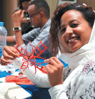 首期“数字创新与跨境电商”训练营学员展示剪纸作品。 吴雨浓摄