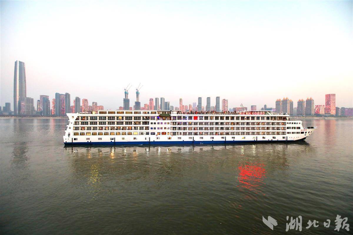 当日下午,汉口之滨,久违的阳光伴着阵阵江风。一艘硕大的白色豪华游轮停靠在23号码头敞怀迎客。