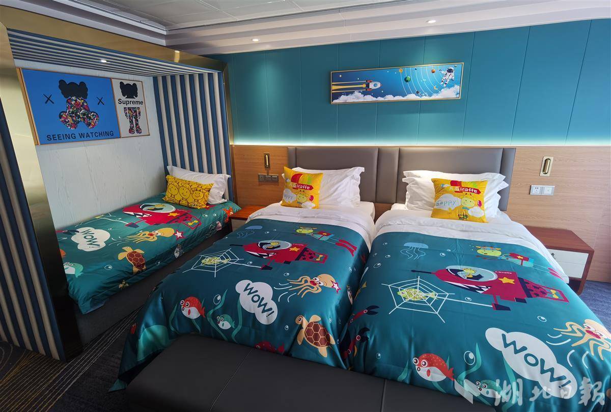 随着电梯逐层而上,除了客房外,文创商品部、儿童娱乐区、书吧、酒吧、棋牌室、电影院等一应俱全。一楼的恒温游泳池内,已有入住的客人迫不及待下水一展身手。
