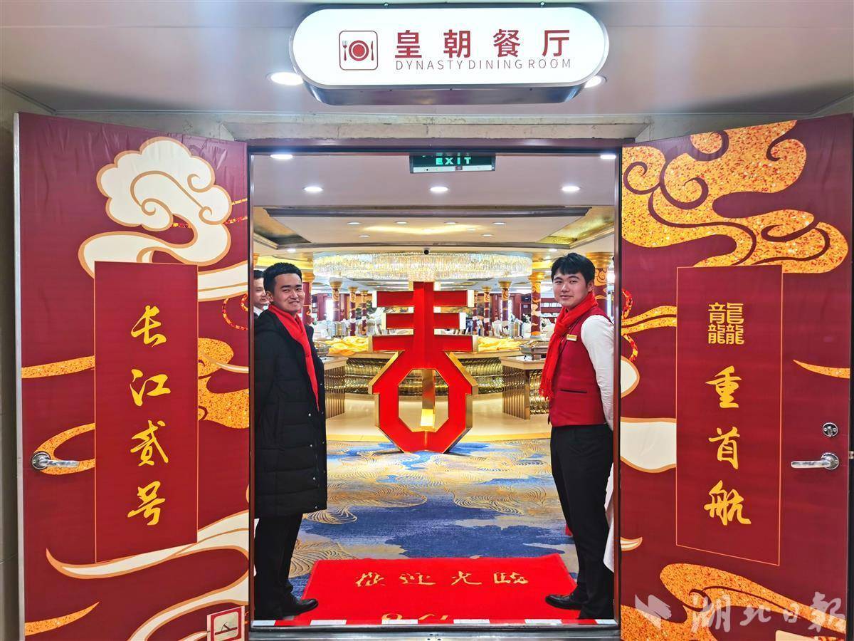 “船上118名工作人员春节忙碌不休,如今万事俱备!”肖君介绍,船上两个餐厅,已经准备了上百种食材。会提供排骨藕汤、鱼糕、粉蒸肉、丰都麻辣鸡等多种湖北和川渝美食,还有热干面、沙拉等特色中西餐点。