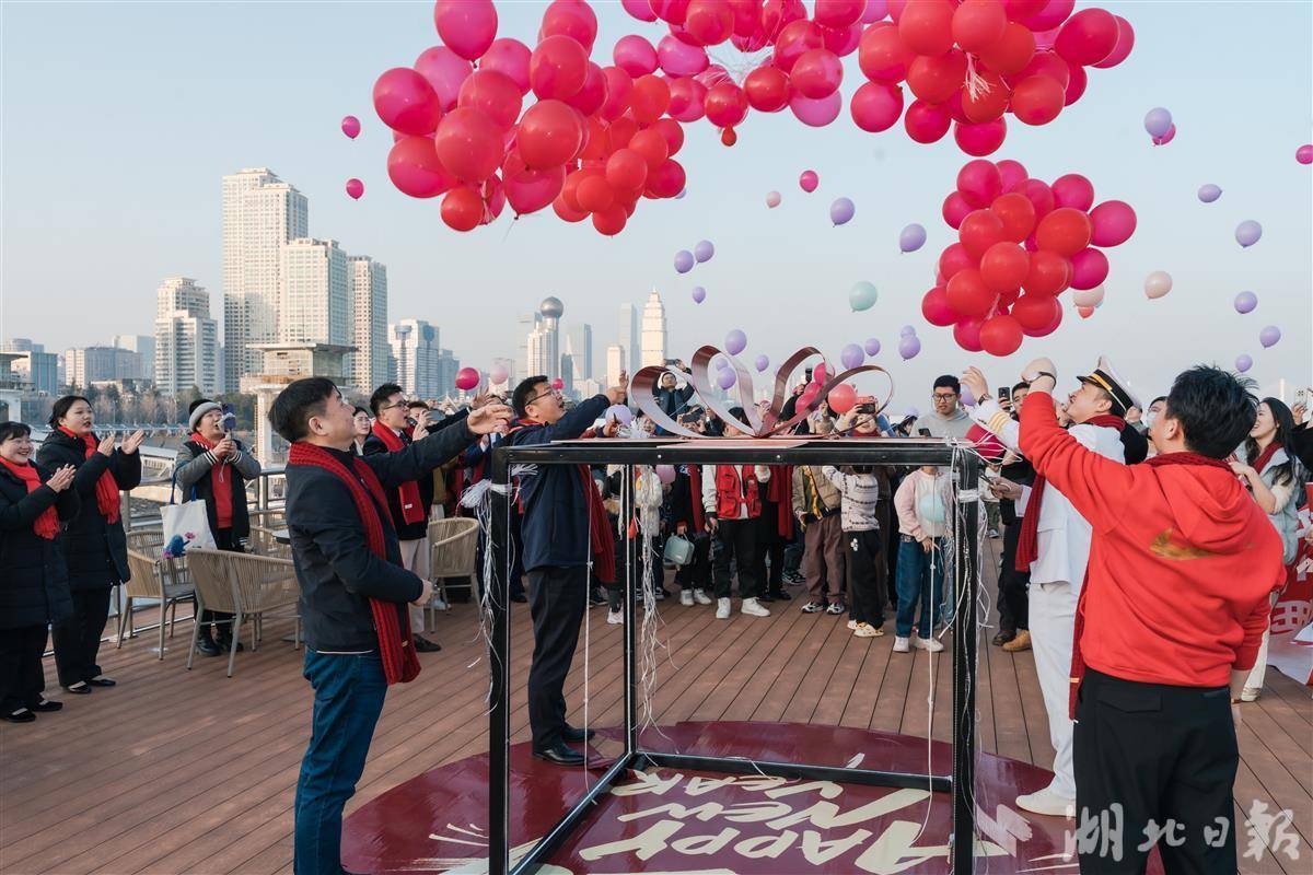 甲板上游客们集体放飞气球并参加船过长江大桥仪式。通讯员供图