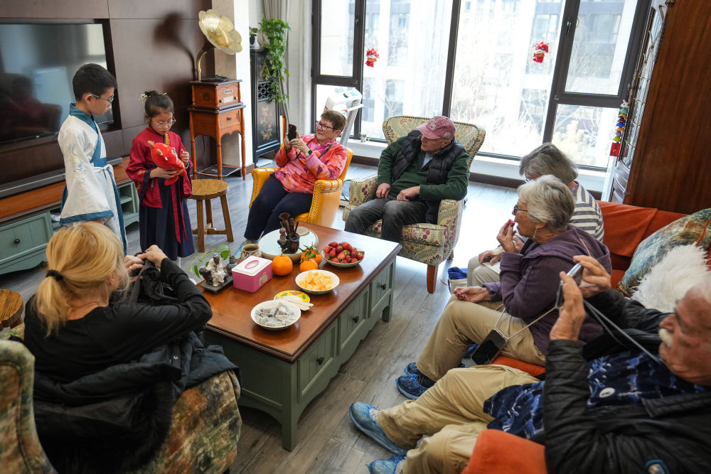 在大连市中山区人民路街道的港盛社区和东日社区,100多名外国游客走进九个市民家庭家访互动。在龙湖水晶铂湾的一户居民家中,今年八岁的梁千朔和两名小朋友身穿传统汉服,用英语推荐游客们品尝东北糕点、讲述日常生活,交谈中不时传来阵阵欢笑。