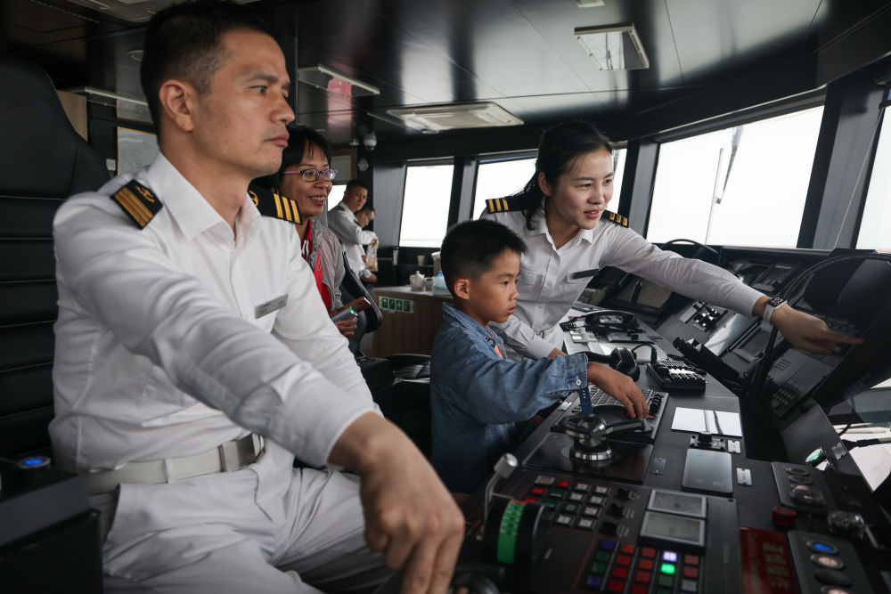 小覃朗看到了战机翱翔天空,也看到了白海豚畅游海洋,“大湾区二号”的大副何倩倩还给他讲解了船舶驾驶和航空知识,小覃朗说,这趟旅行太难忘,长大了也想开大轮船和驾驶飞机。(新华社记者 刘大伟 摄影报道)