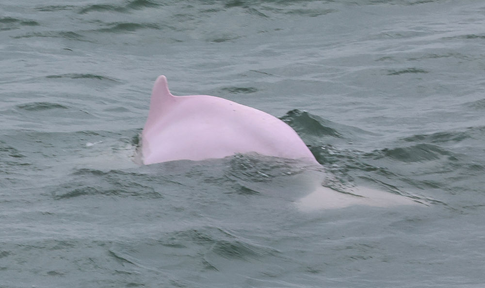 从“大湾区二号” 游轮上拍摄的粉红色中华白海豚。