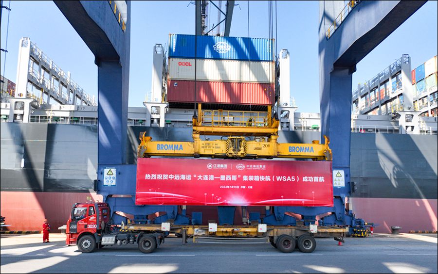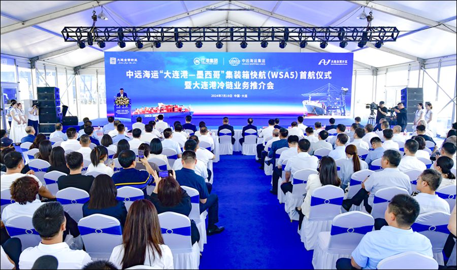 在东北地区与墨西哥经贸往来愈加密切、贸易额持续增长的背景下,为建设内畅外联的高水平开放门户枢纽,提高腹地进出口贸易海运物流效率,辽港集团携手中远海运集团推进央地合作,积极推动“大连港—墨西哥”集装箱快航开通运营。自今年5月“新大连”轮在该航线试航以来,双方团队不断加强工作对接,密切协同配合、夯实货源基础、提升服务质量,为此次航线的正式开通和常态化运营打下坚实基础。