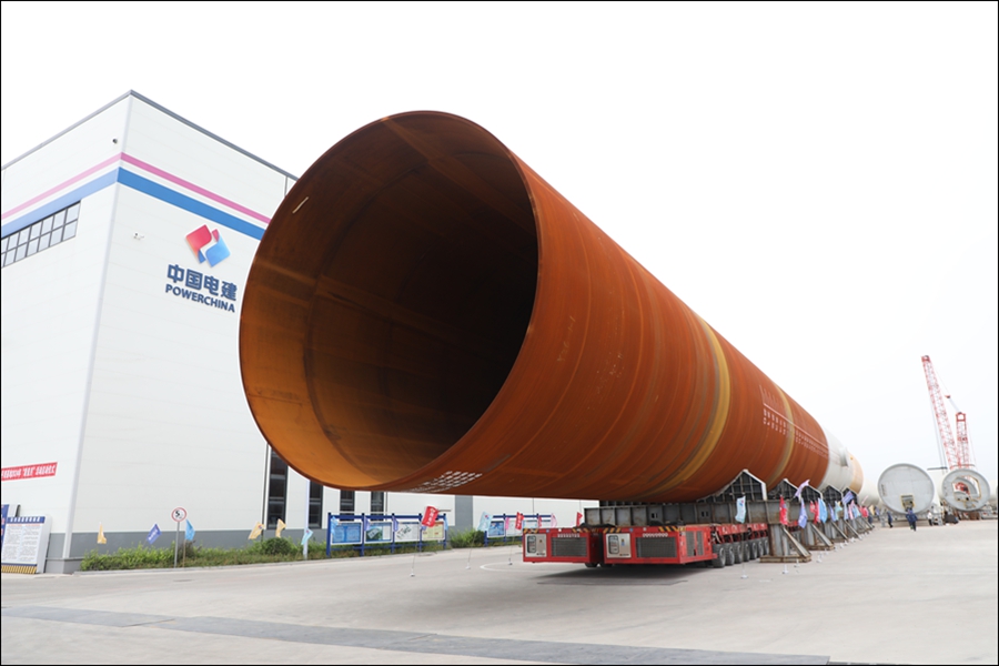 9月10日下午,中水四局(大连)能源装备工程有限公司所生产的海上风电基础管桩正式出运,管桩直径8.5米、长93米、重量达1500吨,这是太平湾风电产业园首批超大型海工装备产品,也是目前辽宁省最长、最大、最重的海工装备产品。