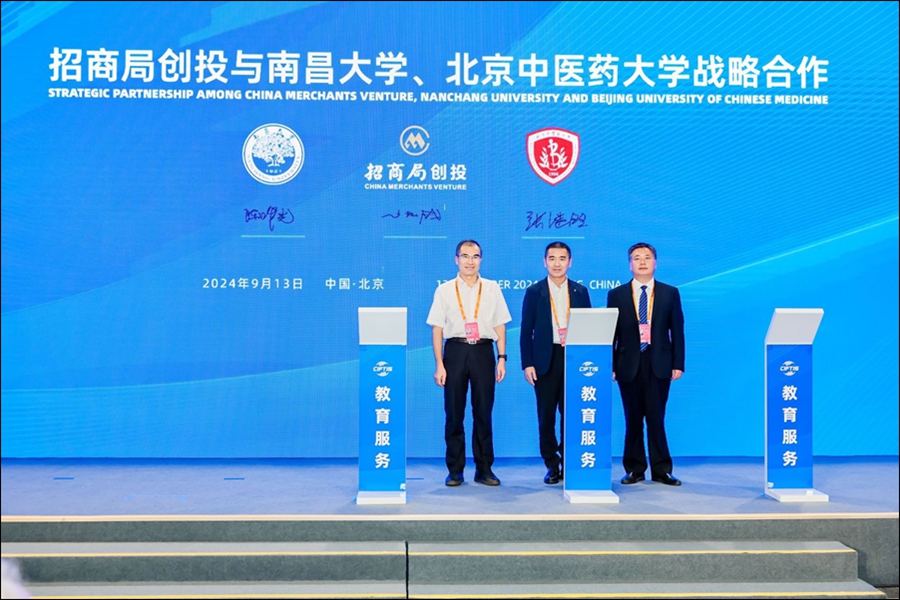 服贸会教育服务专题开幕式现场,招商局创投总经理卢振威分别与南昌大学校长、中国科学院院士陈晔光,北京中医药大学党委副书记张继旺签署了招商局创投与两家高校的战略合作协议,双方将在生命科技和绿色科技方面开展合作,助力创新技术商业化加速落地。