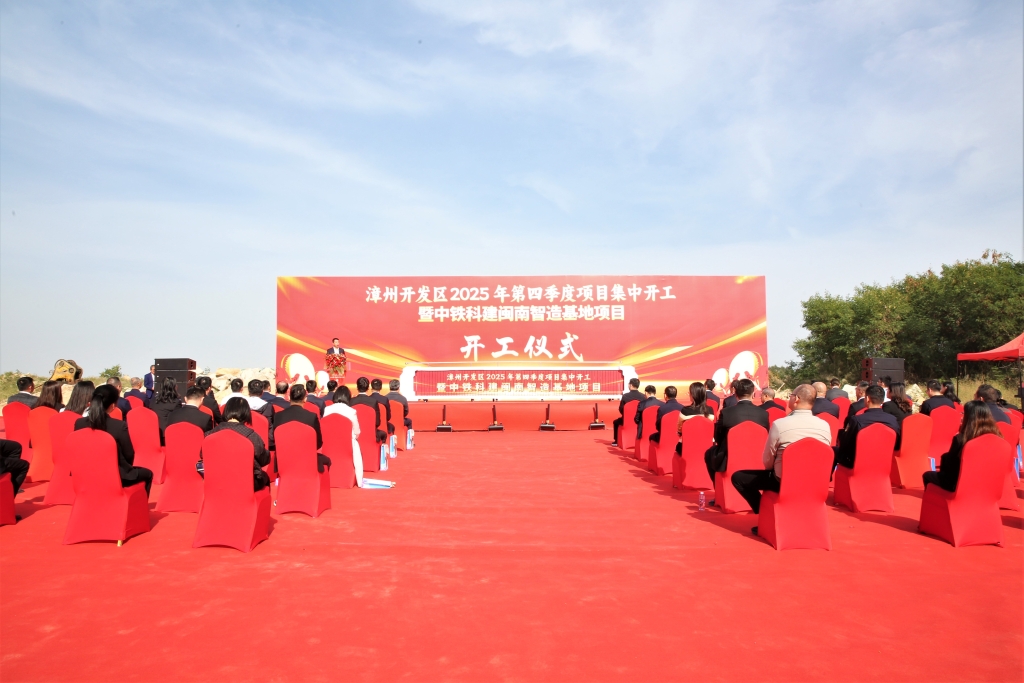 11月28日,漳州开发区举行2025年第四季度项目集中开工暨中铁科建闽南智造基地项目开工仪式。漳州市副市长林少金,漳州市政协党组成员、副主席黄劲武,漳州开发区党委书记、管委会主任彭以良,漳州市人民政府副秘书长蒋启财,漳州开发区党委副书记、管委会常务副主任刘英杰出席活动。