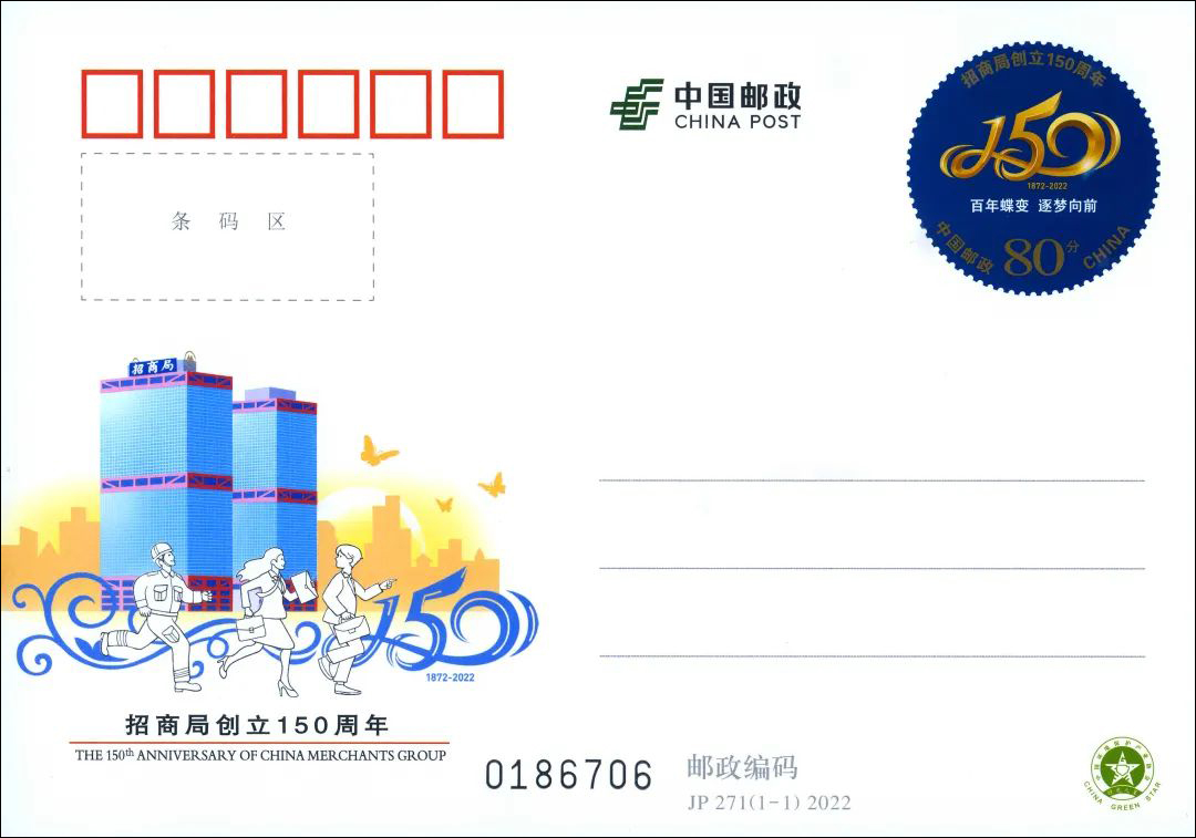 随着中国邮政纪念邮资明信片及香港邮政纪念封的推出,招商局的百年历史将再次走进大众视野,让公众看到中国民族工商业的先驱,在150周年的逐梦历程中一步步蝶变,谱写新的篇章。(集团办公室 供稿)