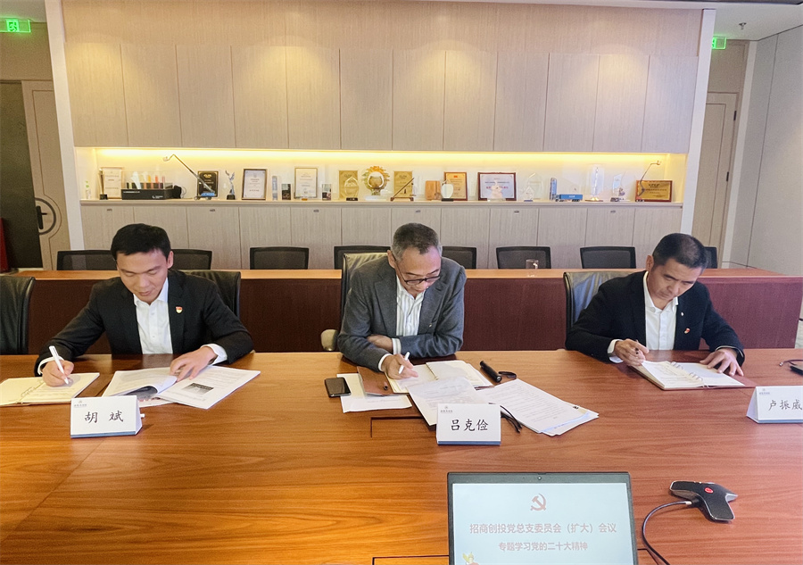 吕克俭在讲话中强调,公司上下要把学习宣传贯彻党的二十大精神作为当前和今后一个时期的首要政治任务,系统部署安排,精心组织推进,迅速掀起热潮,不断引向深入。一是要学懂弄通悟透。将党的二十大精神作为理论武装工作的重中之重,作为公司党员领导干部教育培训的必修课,通过“第一议题”、理论学习集中学习组、“三会一课”、主题党日活动等多种形式,深入学习领会,确保实现党支部和党员干部学习全覆盖。二是要深化宣传引导。充分利用公司线上线下各类宣传平台,精心策划、集中开展一批有特色、有深度、有成效的宣传活动,深入解读、全面准确地宣传党的二十大精神,在公司上下营造浓厚的学习氛围。工会、团青等组织要积极发挥各自优势,广泛开展员工群众喜闻乐见的宣传教育活动。三是要全面贯彻落实。紧密联系实际,把学习贯彻党的二十大精神与推进产业协同创新、助力集团培育新兴产业和培育招商局“独角兽”的职责使命相结合、与发展成为有实质创新贡献、中国领先的企业创投的战略目标相结合、与为集团建设世界一流企业贡献创投力量的工作愿景相结合,扎实做好年度收官工作,科学谋划未来一个时期的重点任务,把党的二十大部署要求落实到推进公司党建发展和创新投资的实践中,为全面建设社会主义现代化国家、全面推进中华民族伟大复兴作出应有贡献。(招商创投 供稿)